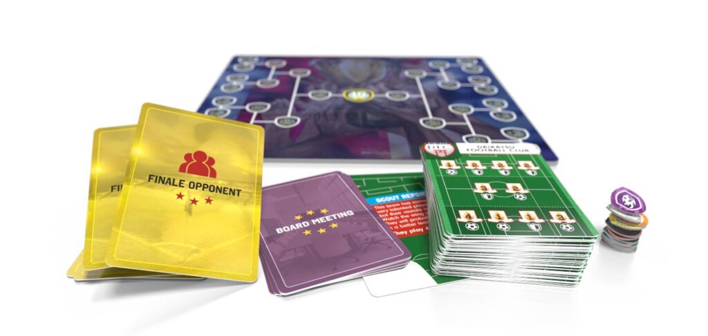 When you play ‘the international cup expansion’, the first 2 weeks of the season are the same as in a normal game of Eleven. But in the following weeks, you play midweek matches on Wednesdays as well. You play in an elimination tournament. There are 42 new opponent cards to discover, so the tournament will be a real adventure. But one mistake and you’re out. That’s how it works.
