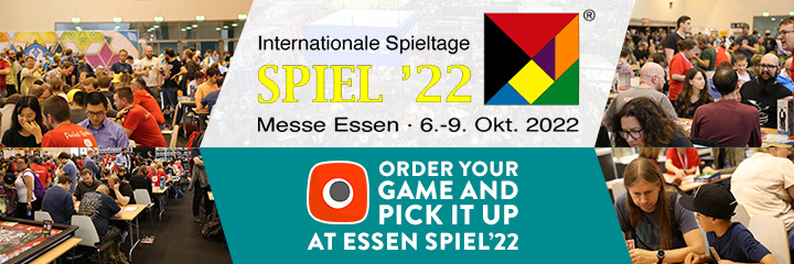 We proudly present this year’s new product line-up for the international board game fair Essen Spiel in October 2022. Two new games and seven expansions will be available at booth 3-O118 and are now ready for pre-order with the pick-up Essen option and regular parcel delivery.