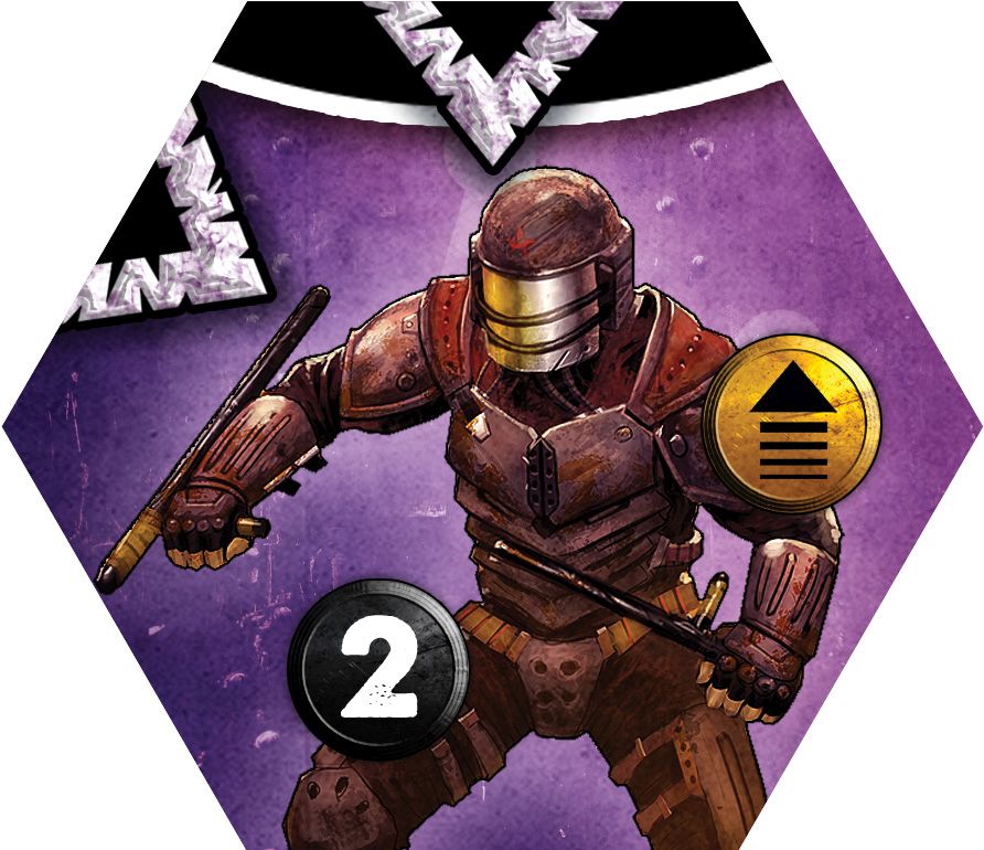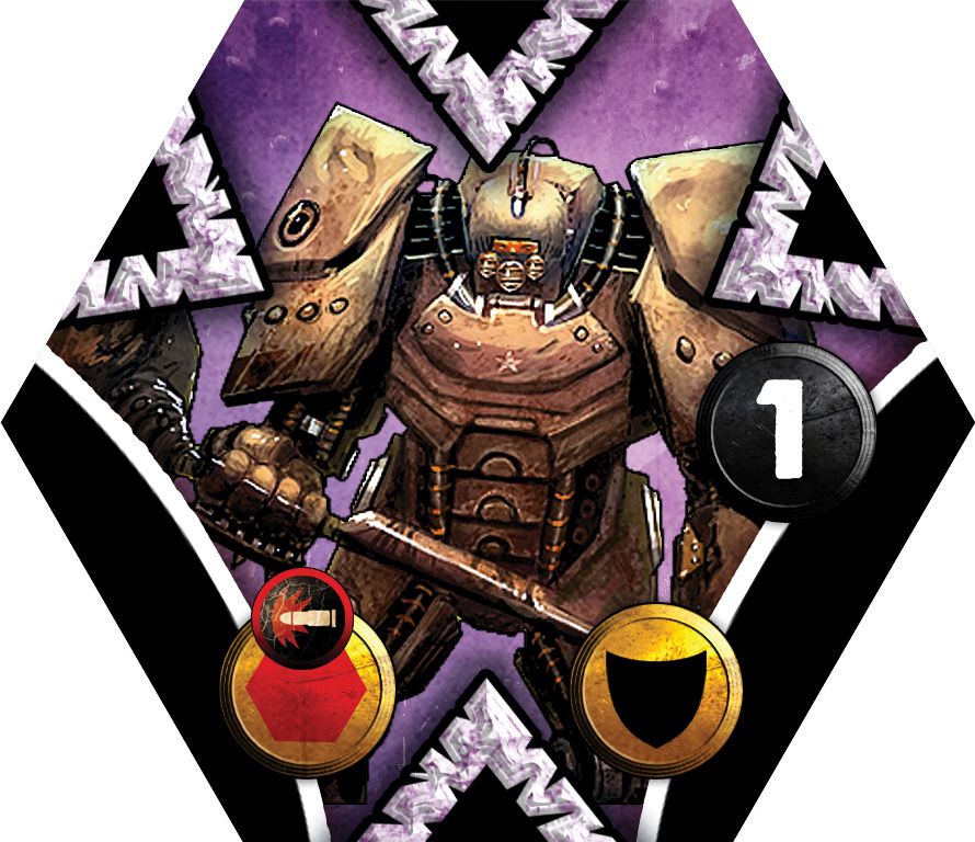Judge – The cornerstone of the Steel Police army. The Judge is mobile, hits hard, and is immune from rear attacks. Not only that, reflection bounces attacks from behind back at the attacker! With three of these tiles in your stack, use him wisely!