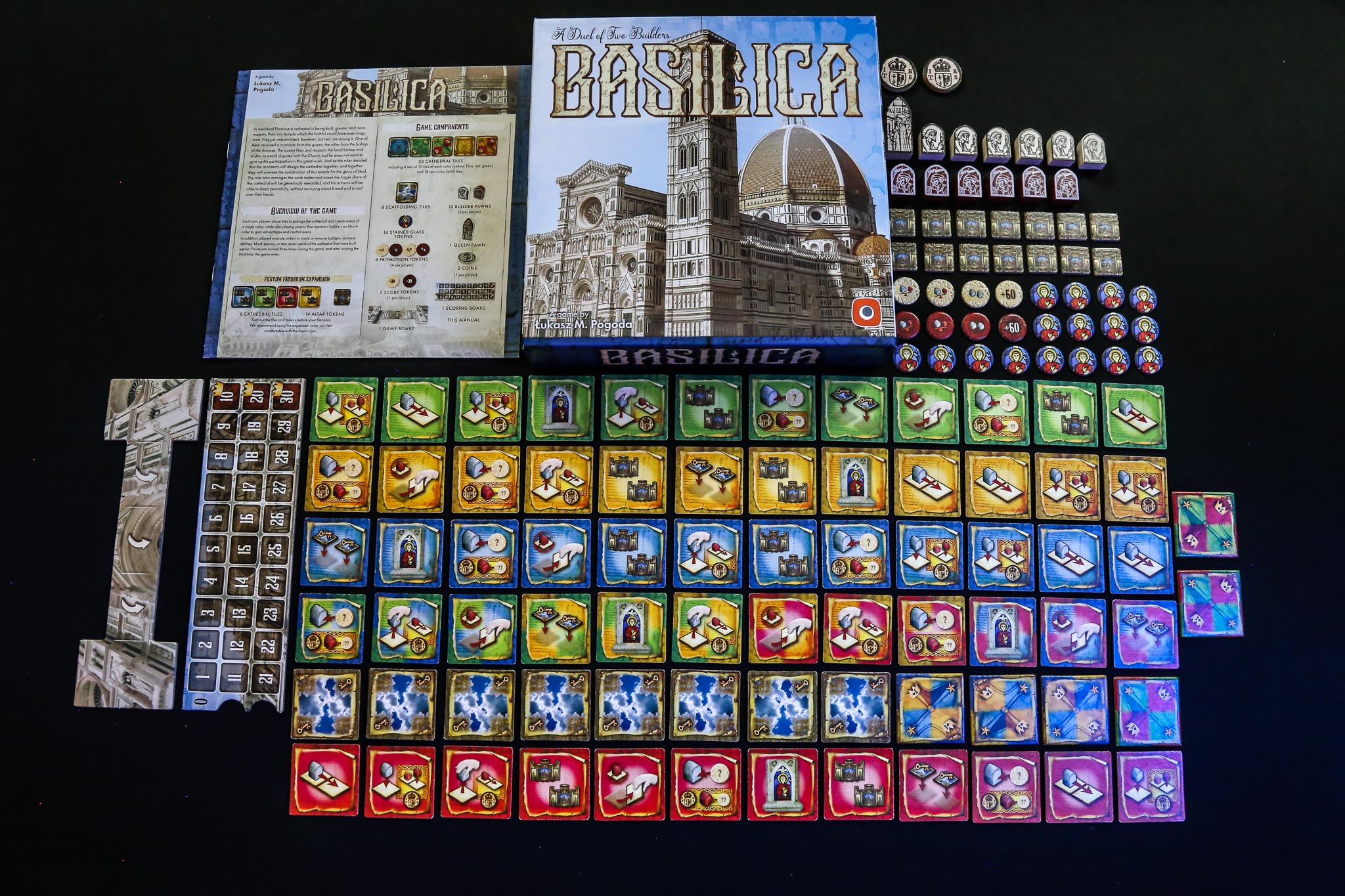 Check out the photo gallery of the area control tile-laying game for two players set in medieval Florence. Here it is, Basilica! The title is available for pre-order in Europe and North America stores.