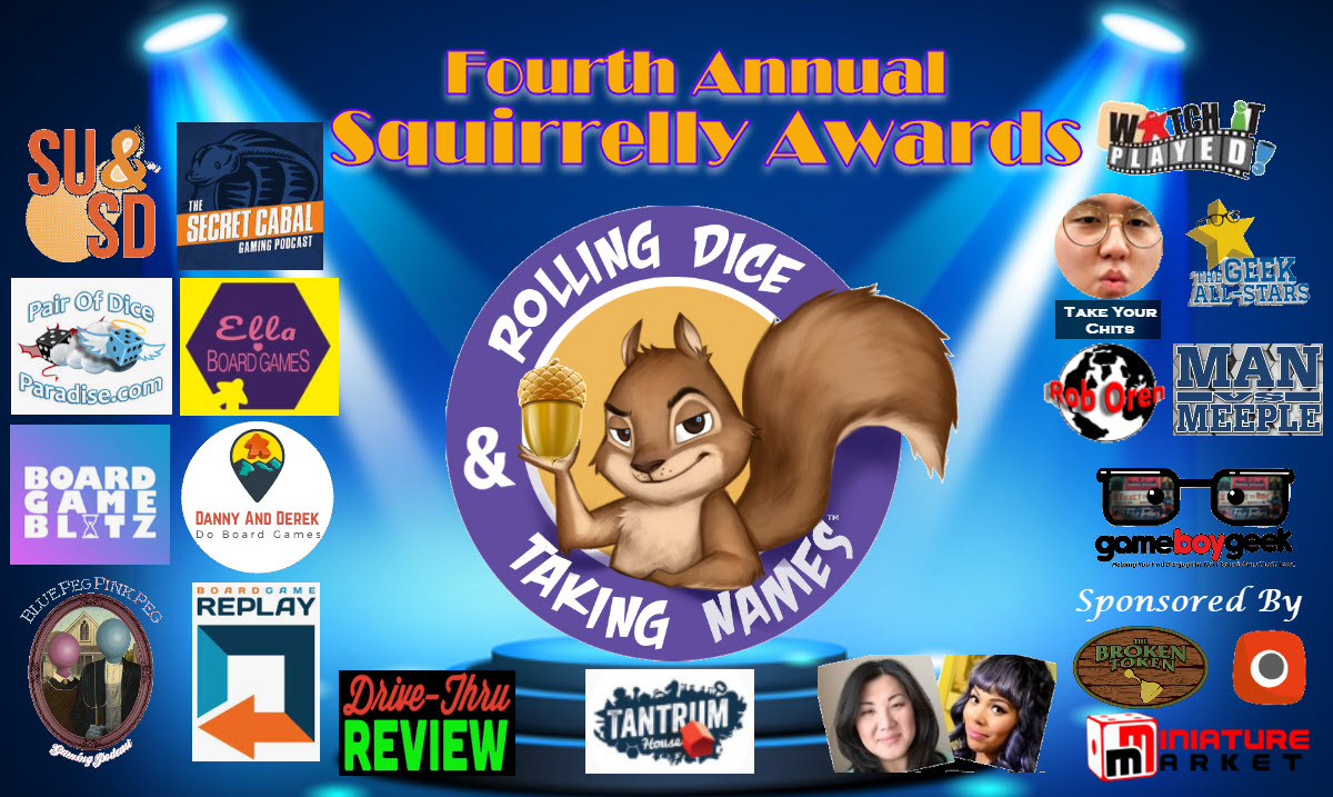 Episode 165 of the Rolling Dice & Taking Names podcast was the time for the 4th Annual Squirrelly Awards. These are the picks from 2018 that stood out during the year for RDTN. Just like the previous three years, RDTN friends were gracious enough to stop by and do the presentations and even some designers and publishers were in the audience to accept the awards. Maybe you will recognize someone from Portal Games.