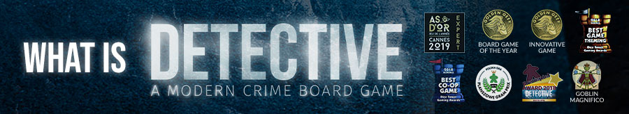 Detective: A Modern Crime Board Game is a fully co-operative, immersive, detective experience. This is a game of wits and deduction, a full game night experience – a single game session can last up to 3 or more hours. It is also rules-light, meaning, that the most powerful tool at your disposal is your team, your imagination, and your own mind.