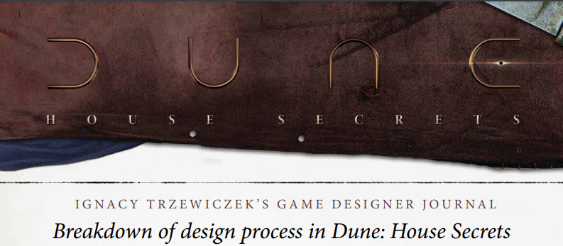 News Dune: House Secrets – Breakdown of design process part 2 2021-11-05 Portal Games A time while ago, we shared the first part of the designer’s journal. This time we have the whole thing for you in pdf format, with beautiful illustrations from the world of the Dune. We wish you a happy reading. Go to the article