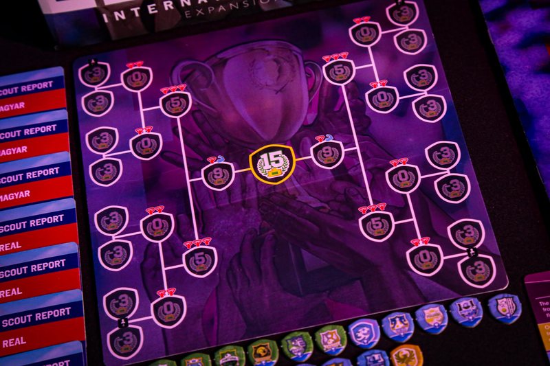 When placing items on the Transfer Area, remove a regular Player cards (not Youngsters or Veteran cards) and replace them with cards from this expansion, creating the International Market. Divide new players into 5 piles depending on the region they come from – Americas, Eastern Europe, Western Europe, Asia or Africa. From the Youngsters make the 6th pile (Home Market). Each player places a special Scout token above the chosen deck and receives 4 Flight markers.