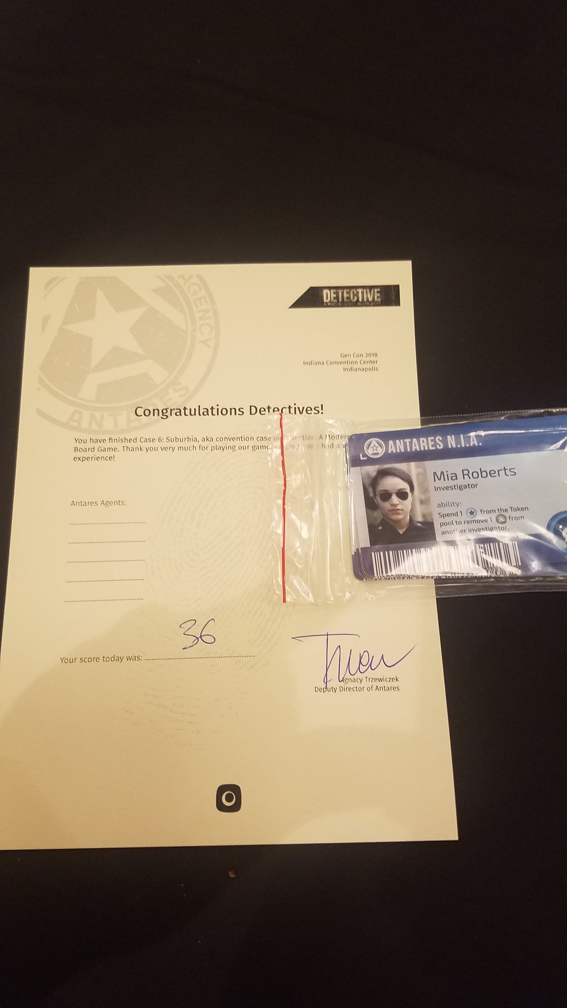 36 out of 40! What a great score for the Case 6! Signed by Trzewik himself! The game was finished.
