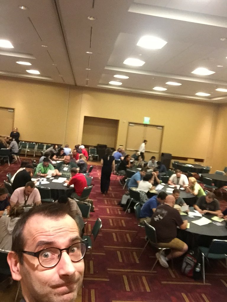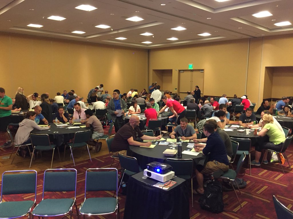 Gen Con 2018, Day 3, Saturday. We have barely any product left at our booth. So… what’s next? Well, how about we hold an event for more than 100 people playing Detective at once? Sure! Here is a short report: