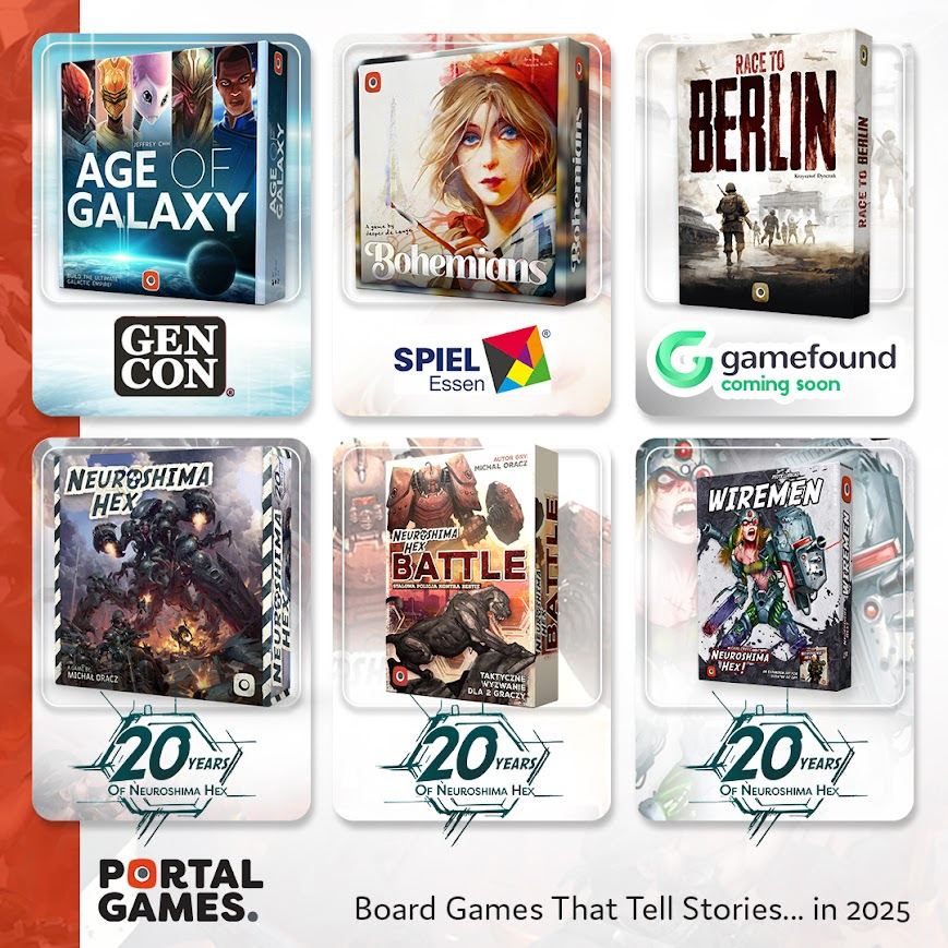 Each year at Portalcon we also announce titles that our development team prepared for the US market. I am very proud of our portfolio this year – for Gen con we have a science fiction card game Age of Galaxy. Fans of 51st State or Imperial Settlers will love it, because it let you play card in a different ways (so called multi-use cards mechanism). For Essen we have a true Board Game That Tell Stories, insane thematic Bohemians – in this game you are a starving artist in Paris who dreams big! And above that this year we are celebrating 20 years (yes, twenty years!!) of Neuroshima Hex – with two new insane boxes in the line, plus small expansion.