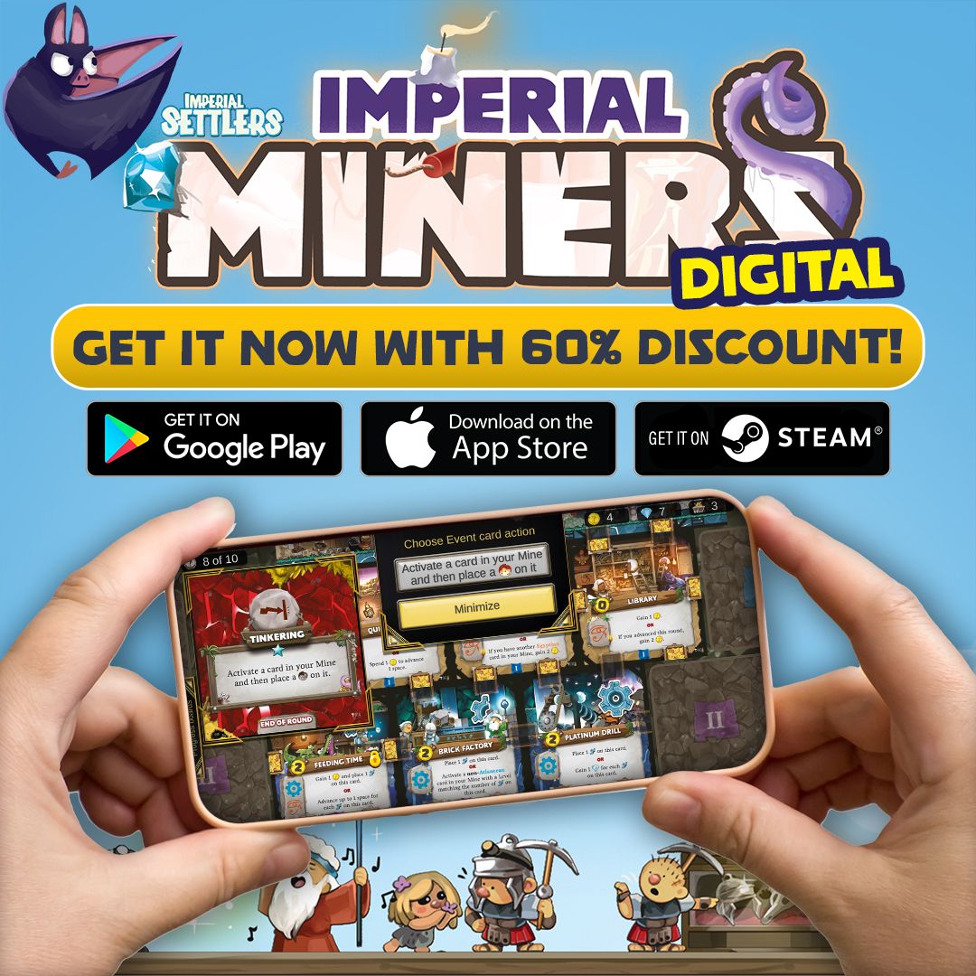 The board game version of Imperial Miners was released last year in 14 languages worldwide. A number of additional solo mode scenarios have been released, and the first official expansion, featuring two new factions, will be available in just a few weeks.