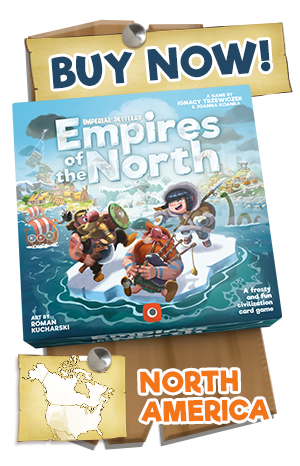 Empires of the North is aimed both at the new players and also all fans who love Imperial Settlers and are looking for a great engine building experience. The box contains 6 unique, ready to play decks featuring Vikings, Scots and Inuit clans. Each deck offers a great variety of strategies and excellent replayability value.