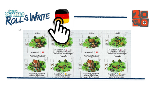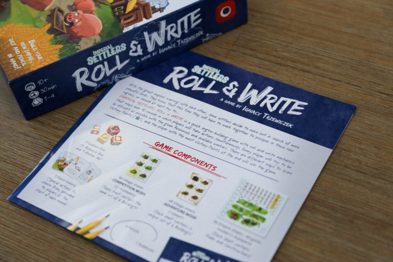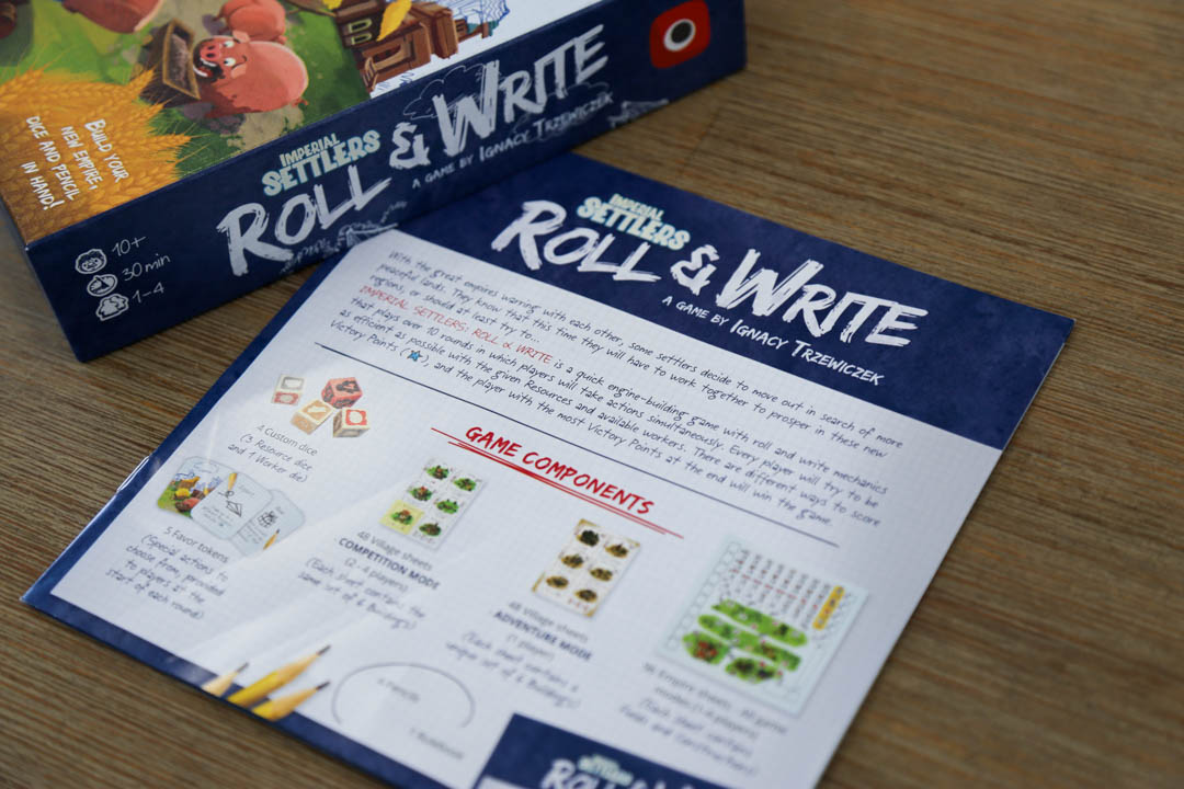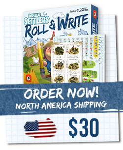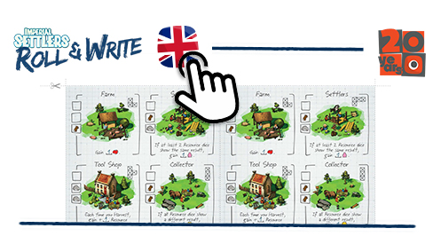 IMPERIAL SETTLERS: ROLL & WRITE is a quick engine-building game with roll and write mechanics. Each player tries to be as efficient as possible with the given resources and available workers. In the game, players construct new buildings to gain abilities, build bridges to reach new lands and different constructions to gain victory points. The player who built the biggest Empire and gained the most Victory Points at the end of the 10th round wins the game.