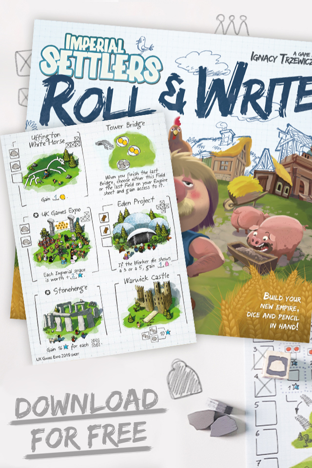 We have something special for you today! As you know today UK GAMES EXPO BEGINS! During the convention you can visit our booth #2-552 play Imperial Settlers: Roll & Write and get specially designed for UK Games Expo Village sheet.