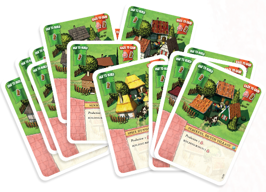 • The picture makes it look like all 12 “village” cards are mechanically identical. Are they different other than artwork? Is it expected that you’ll put all 12 villages into the Common Deck?