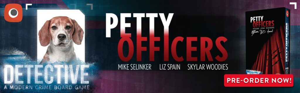 Sometimes everyone needs a break, even special agents. They come home with a desperate need of a hug. Especially if it’s a hug from someone hairy, with a damp nose and a wagging tail. But hugs aren’t their only speciality. They can also solve a criminal investigation… Petty Officers is an expansion to the legendary crime board game Detective by Ignacy Trzewiczek. The expansion was written by famous Mike Selinker, together with Liz Spain, Skylar Woodies and the Lone Shark Games team. But this time pets join the Antares investigative team!