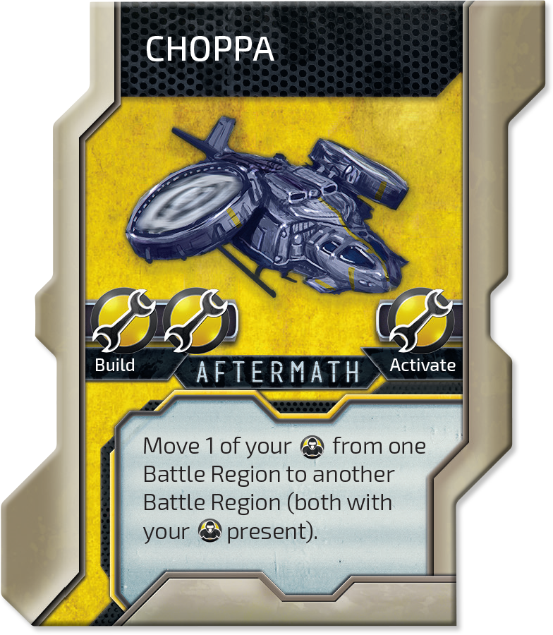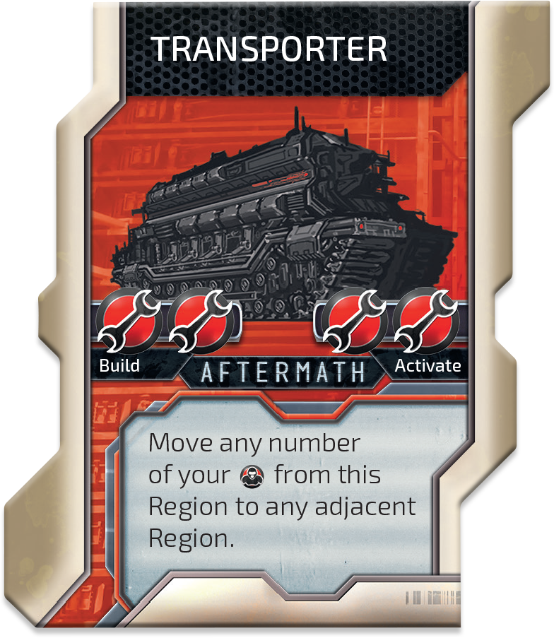 We heard you want to move faster. We don’t you build TRANSPORTER and move any number of your Units from this Region? Suddenly the Machines can move, and they move paying with their beloved resource – Wrenches!