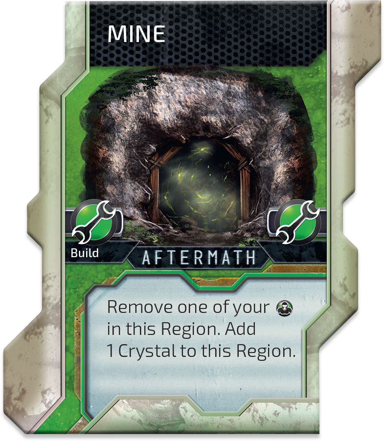 And last but not least, TURBO HARVESTER. The super tricky structure that generates first 1 crystal, then 2 crystals, then 3 crystals, then 4 crystals… Then your opponents probably flip the table… In the Aftermath expansion we gave Pilgrims a huge tool for creating combos with access to every Skill card, and then we gave them some defending and some generating Crystals abilities. Have fun with new toys!