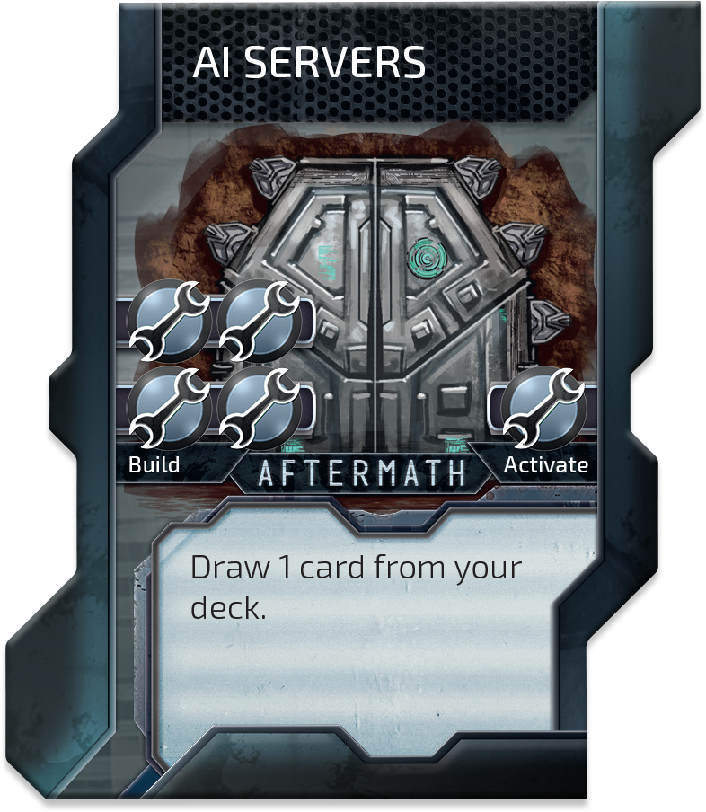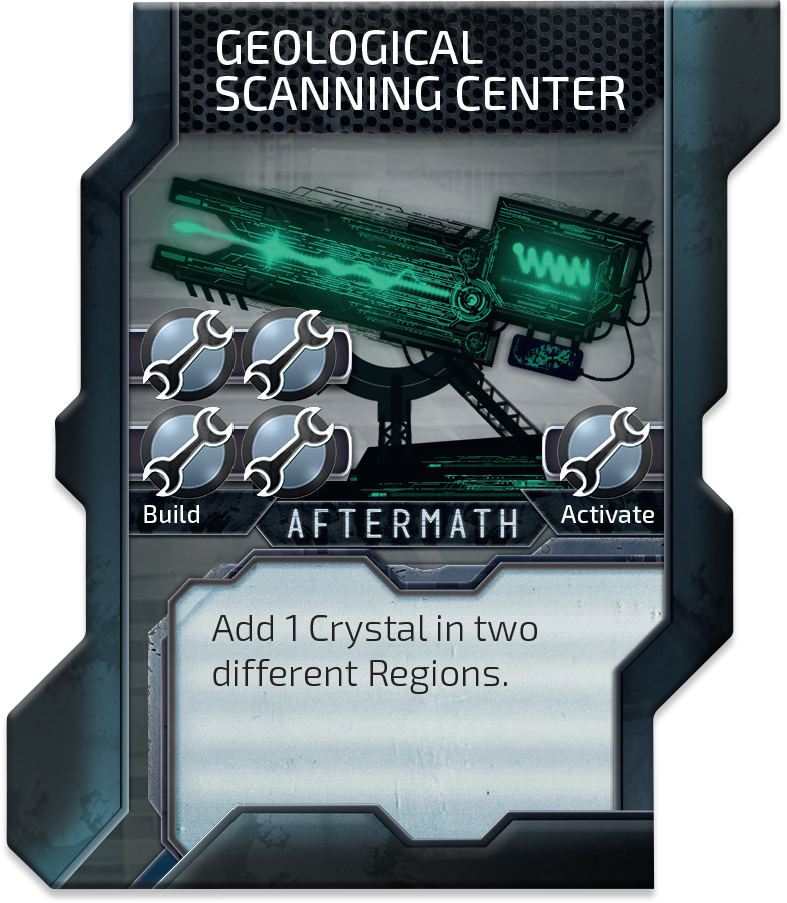 We also added three neutral structures – any Faction can build them. They are simple, straightforward and they give you another choice when it comes up to building stuff. PROPAGANDA STATION scores you 1 Victory Point each time you activate it. GEOLOGICAL SCANNING CENTER adds 1 Crystal into two Regions, AI SERVERS allows you to draw 1 card. These are legit and interesting options, huh?