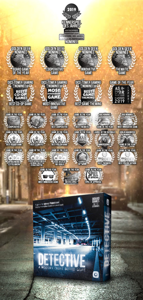 The game has won Portal Games many prominent awards and nominations including Dice Tower Best Theming Award 2018, As d’Or Expert Game of the Year Award 2019, nomination for Kennerspiel des Jahres 2019, nominations for Golden Geek Best Game of the Year 2019, Golden Geek Best Cooperative, Best Innovative and Best Thematic Game of the Year 2019.