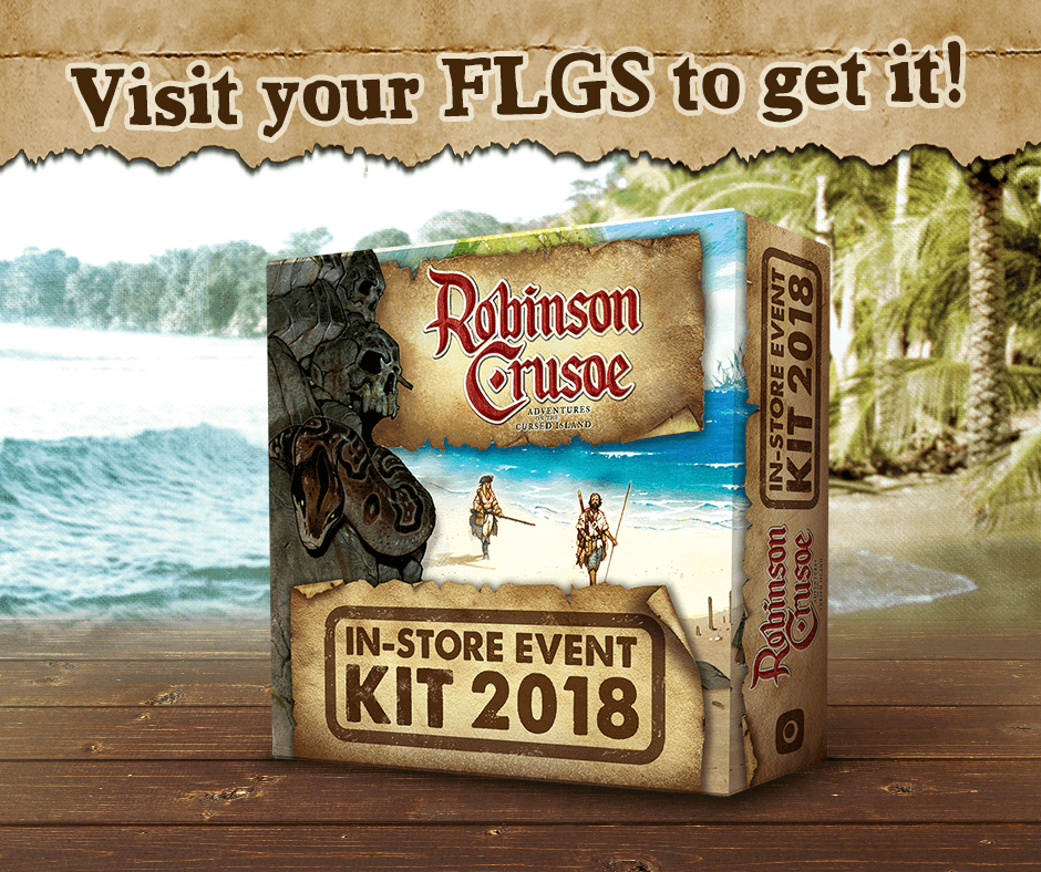 The Robinson Crusoe In-Store Event Kit release date is March 21, 2018! If you would like to participate in a Robinson Crusoe game night event, make sure you tell your FLGS about our Kit. Its contents are, as usual, only available through a game store. Since we have many question from pubs and clubs, we would like to clarify, that you have to have a retailer status to order the kit from one of our distributors.