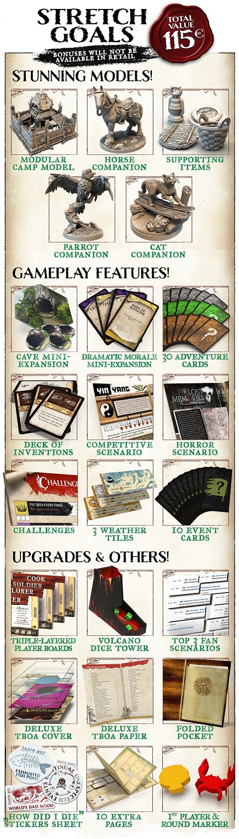These are the last hours to finish up your pledge for the Robinson Crusoe: Collector’s Edition. We are closing the Pledge Manager on November 4, the end of the day. If you have already finished up your pledge, you are all set. If you are still on the fence or consider making a late pledge, we would like to remind you the list of all the Gamefound exclusive Stretch Goals that got unlocked during this campaign: