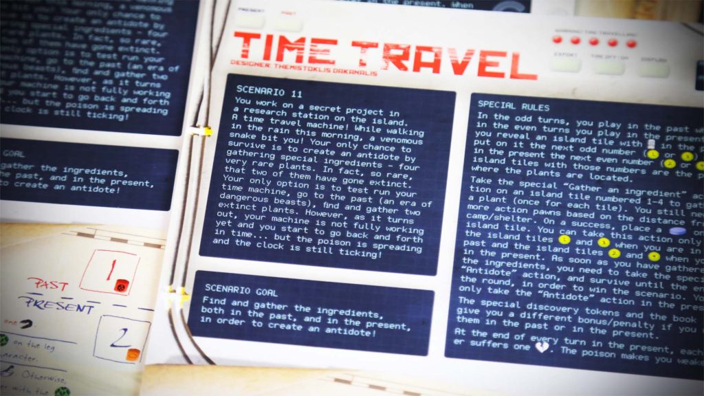 Even if you are not a fan of Adventuring on the Cursed Island, you should consider stopping by your FLGS. This kit will include a completely new scenario: Time Travel. It was created by Themistoklis Dakanalis, the 2017 contest winner. He is the author of 11th official Robinson Crusoe scenario. Time Travel will take you (no surprise there) back in time, to an era of dangerous beasts and rare healing plants. Your goal would be to save your own life!