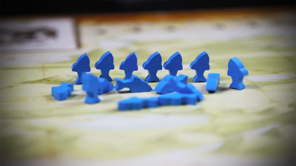Now something you all have been waiting for! Wooden fish tokens! Those cute little wooden pieces (Pisces) represent food resource. Now you do not have to fish for bananas – you can acquire literal fishes, as shown on the Robinson Crusoe board.