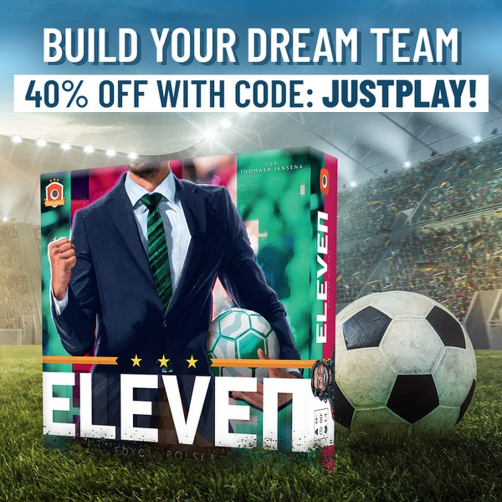 Eleven is a strategic game by Thomas Jansen (Club Stories, Tavern, Streetpainball) set in the world of football. You will be faced with the task of managing and developing your own football club to dominate the league and defeat your opponents at the end of the season. Each day of the Week will be associated with different demanding tasks. Thanks to skillful management you will carry out further transfers, train players, hire new employees, acquire sponsors and expand your own stadium. All this to ensure that your team is ready to win on the decisive day of the match.Eleven was a huge success during the crowdfunding campaign, gaining nearly 4,000 backers on Gamefound.