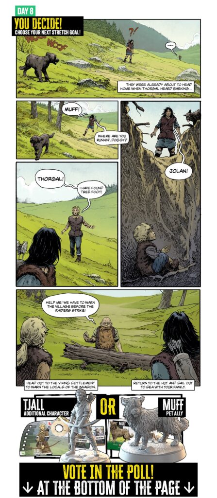 Your reception of the previous Quest was super positive, and we are very happy about it because we have another Quest for you – this time Thorgal must decide whether to go with Tjall to warn a neighboring village of danger or to help Muff rescue Jolan from an unfortunate adventure!